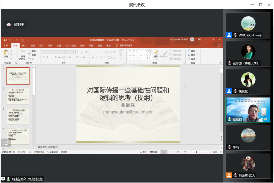 中国传媒大学出版社社长张毓强教授结合多年国际传播的调研工作,细致讲述《对当前国际传播一些基础性问题的认识》。他认为,国际传播工作应具备基于实践的问题意识,关注其基本概念及其背后的问题、国际传播事件的成效,明确当下的问题与战略目标。一方面,认识到全球范围内信息传播的碎片化和即时性效果,另一方面,要改变传统意义上国内、国际的区分。国际传播应该在新的全球性、世界性视角上认识传播的内在价值,以对话不对立、友好不讨好、亲和不迎合的姿态理解国际传播问题,深入理解中国并重构主体性。